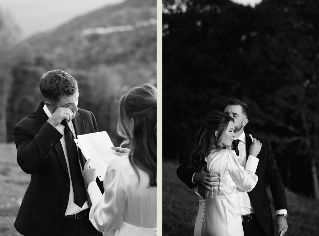 At the top, they stood together—no crowd, no noise—just two people facing each other in open air. Their vows were spoken as the light stretched across the hills. With their tissues left in their cabin, they used the paper from their vows to catch their tears.