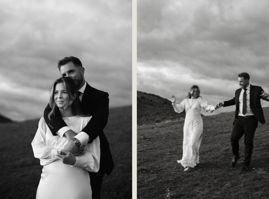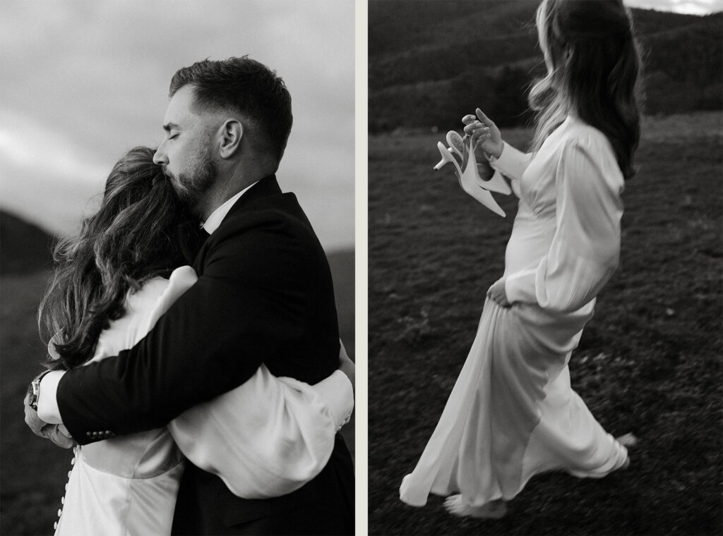 After sunset, Caitlin slipped off her shoes. With the day behind them and the last of the light fading, they danced their way down the slope, quiet laughter between them, mountains at their back.
