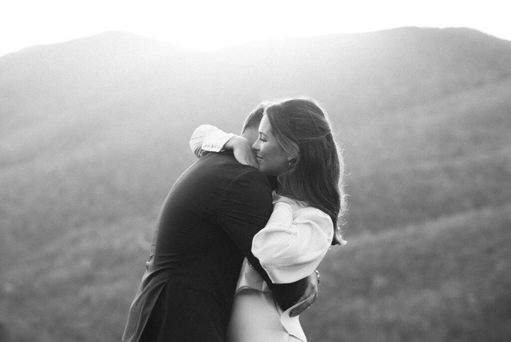 At the top, they stood together—no crowd, no noise—just two people facing each other in open air. Their vows were spoken as the light stretched across the hills. With their tissues left in their cabin, they used the paper from their vows to catch their tears.