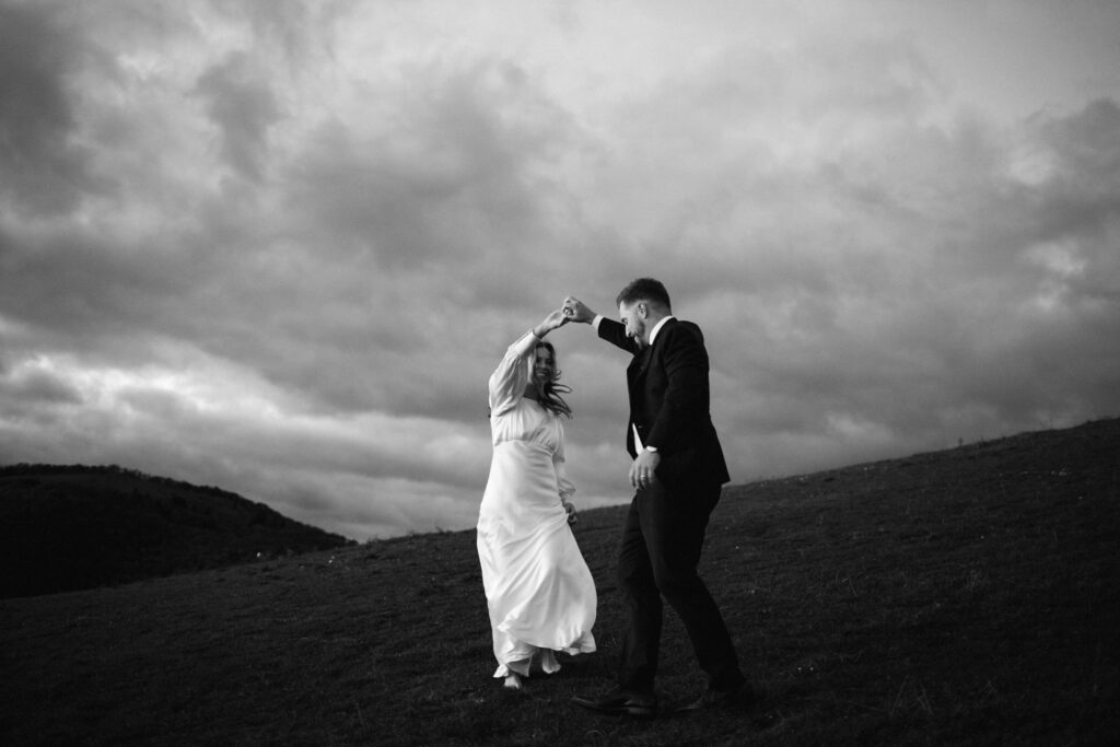 After sunset, Caitlin slipped off her shoes. With the day behind them and the last of the light fading, they danced their way down the slope, quiet laughter between them, mountains at their back.